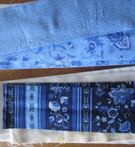 Once I have the top of the quilt finished, I move on to making the border to frame the pattern. I typically draw upon the fabrics in the quilt to make the border so there is a balance, but sometimes I make other selections to jazz it up.