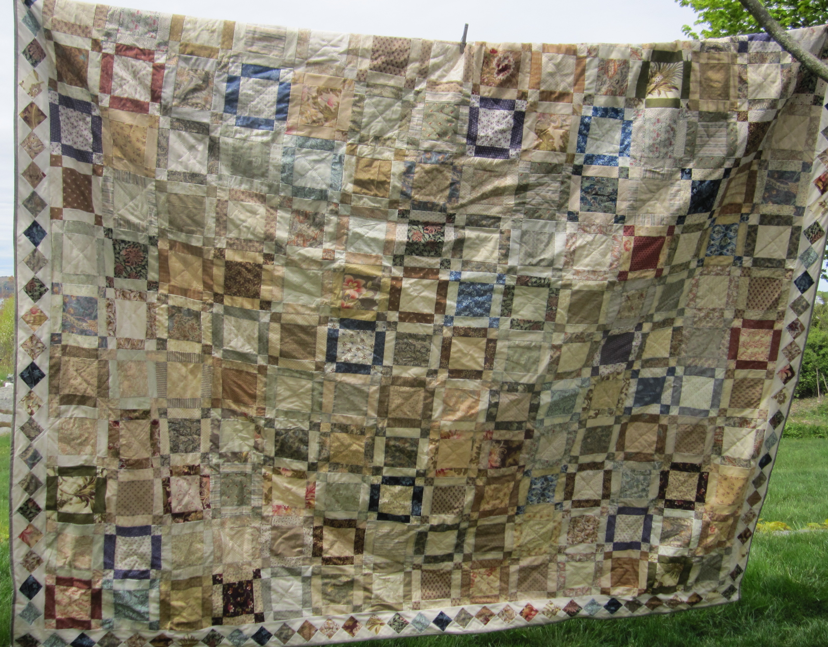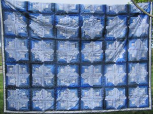 This one is 105 ” x 105″. I posted about it in development as the “shirt quilt.”