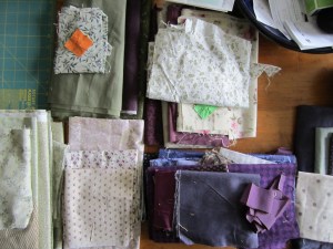 I’ve been playing with some old fabric that I used to use to make children’s quilts. Lots of playful colors and patterns. What fun!