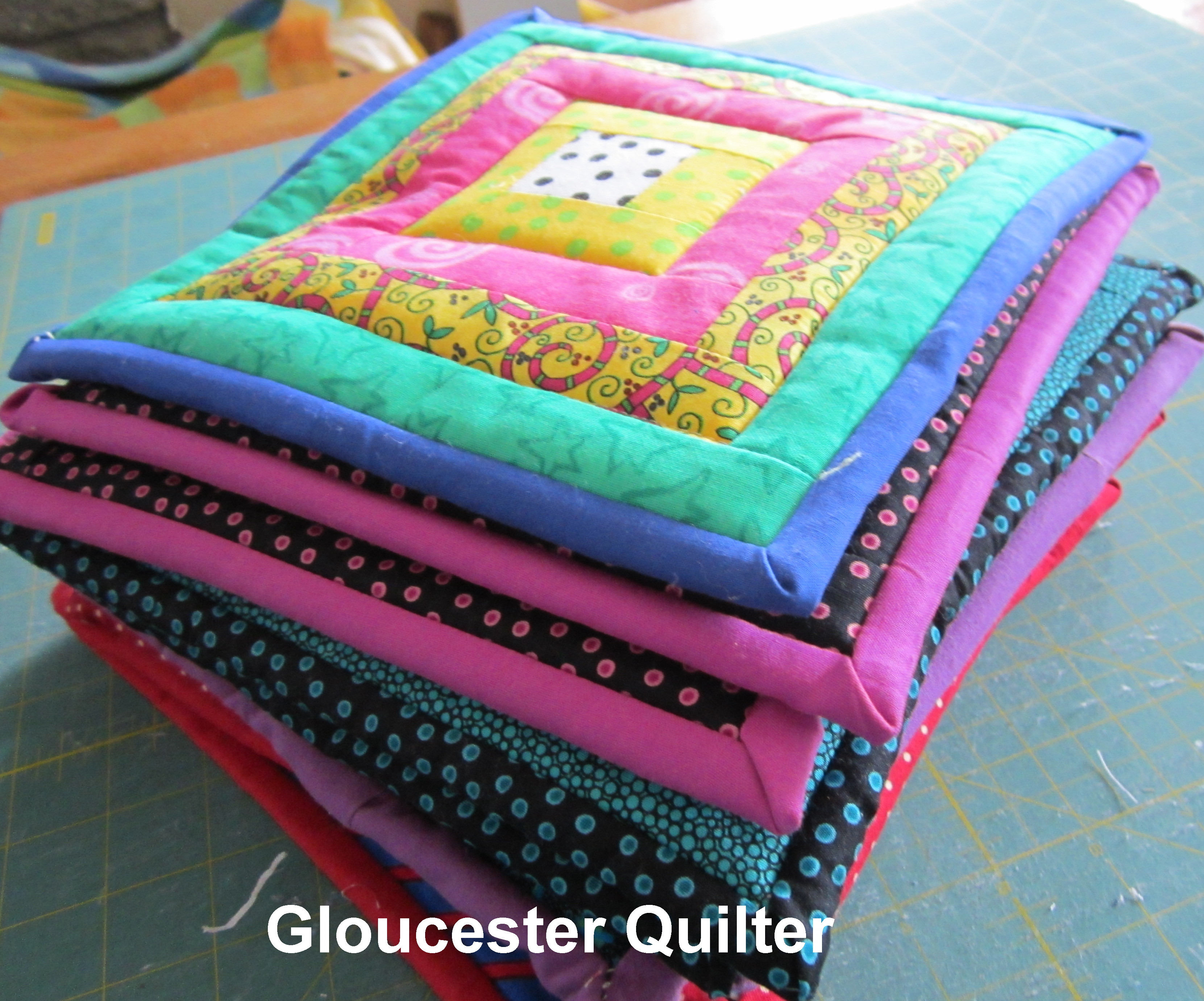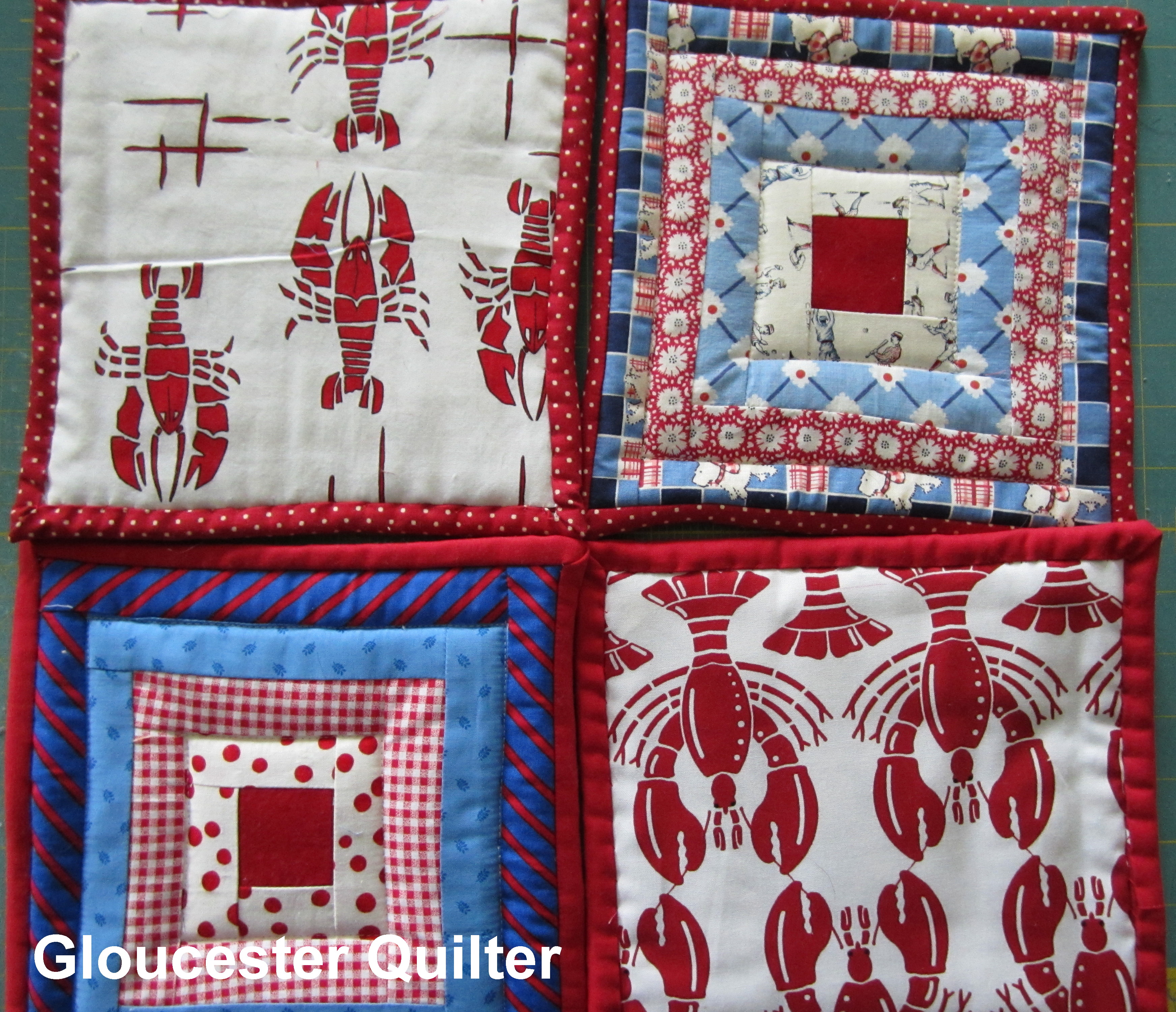I have flipped the potholders to show you what the backs look like. I make two of each but they are sold separately. You can find my potholders at Alexandra’s Bread on Main Street in Gloucester.